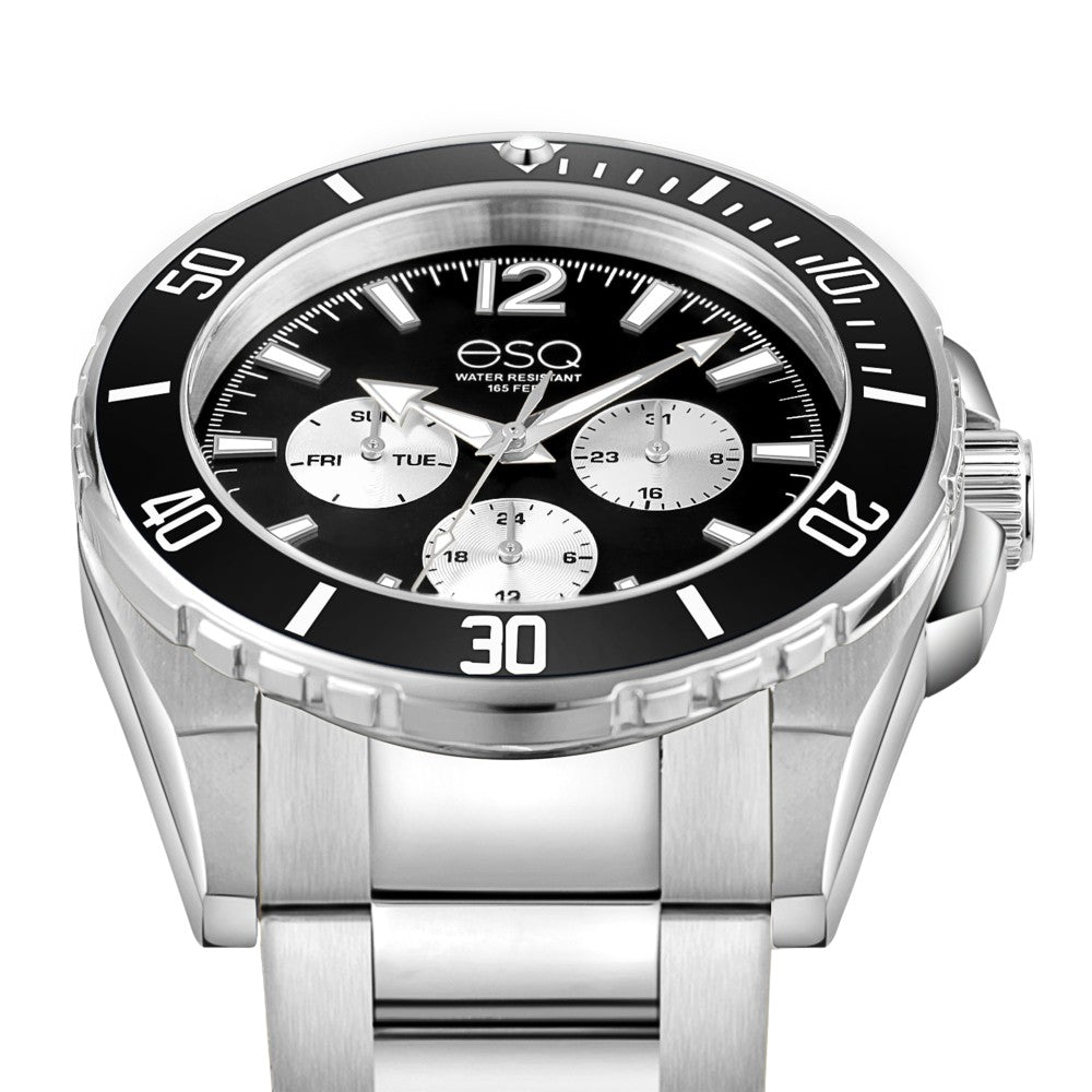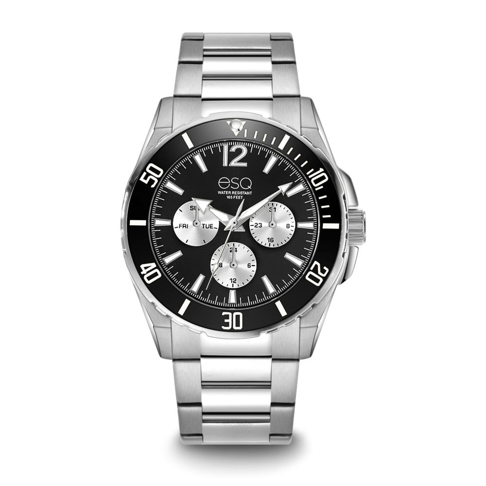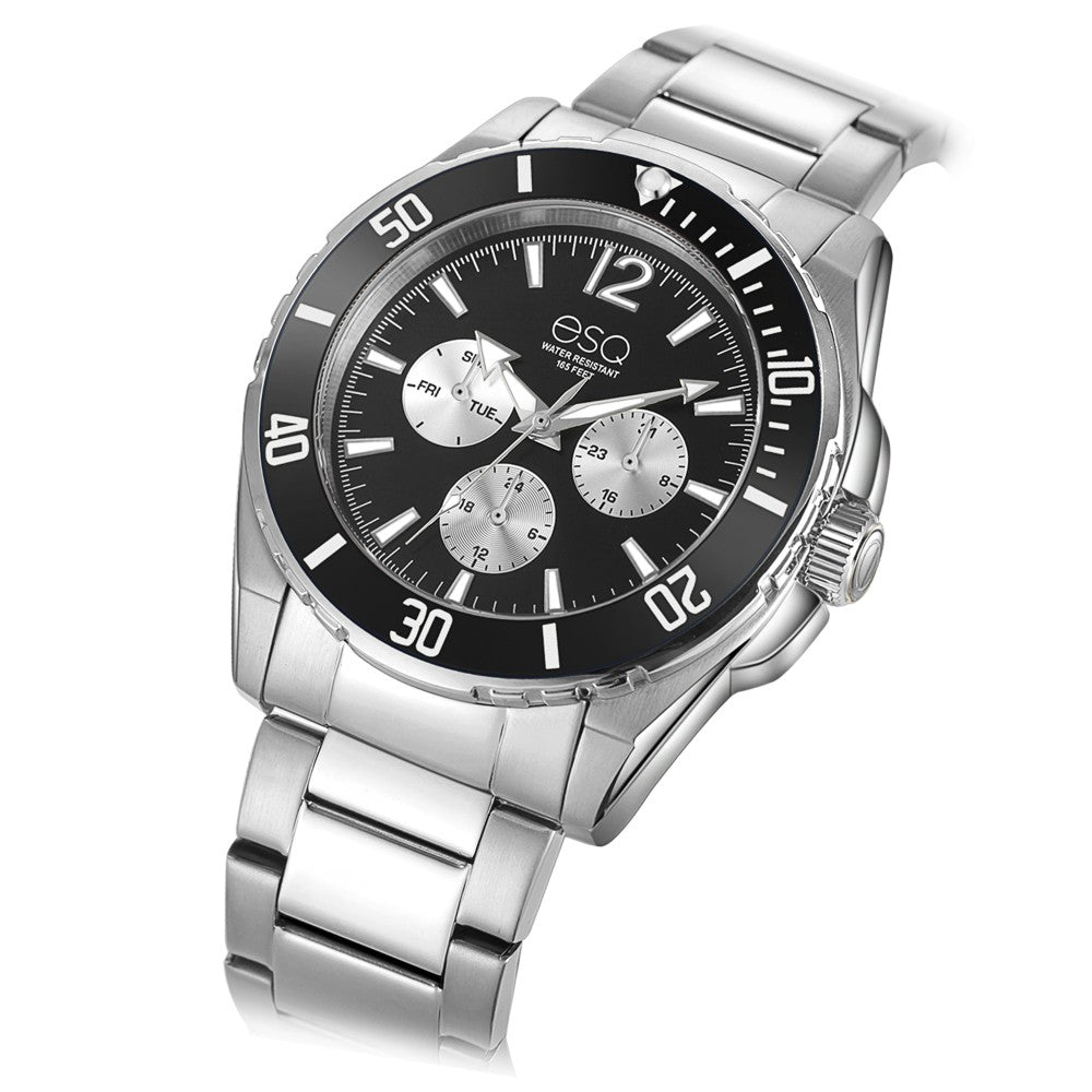 ESQ - Steel Case / Black Dial 43.25mm Stainless Steel Case, 24mm Steel Link Bracelet, Multifunction Movement, 165 Feet Water Resistance.