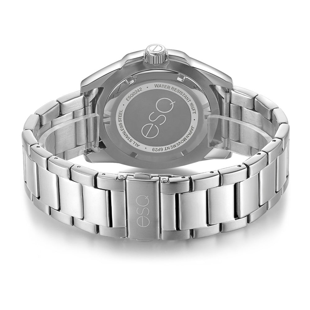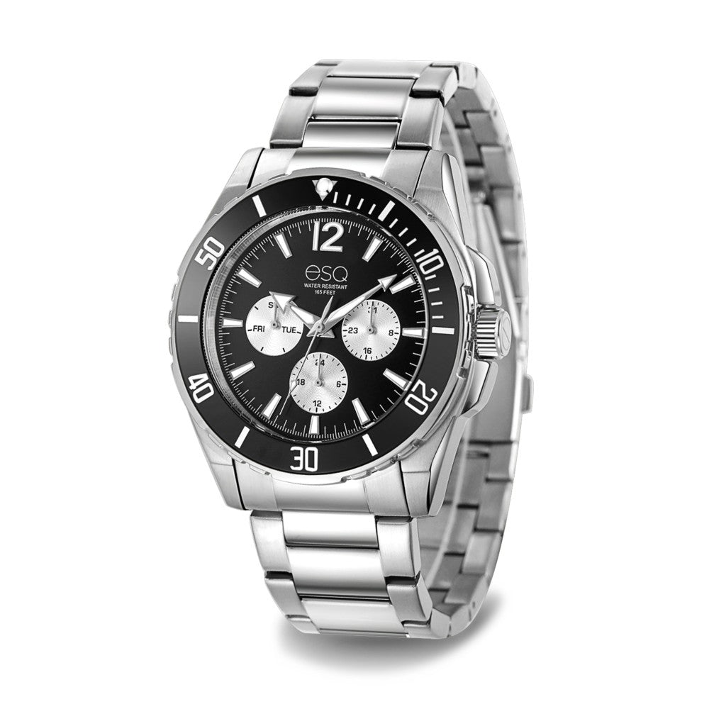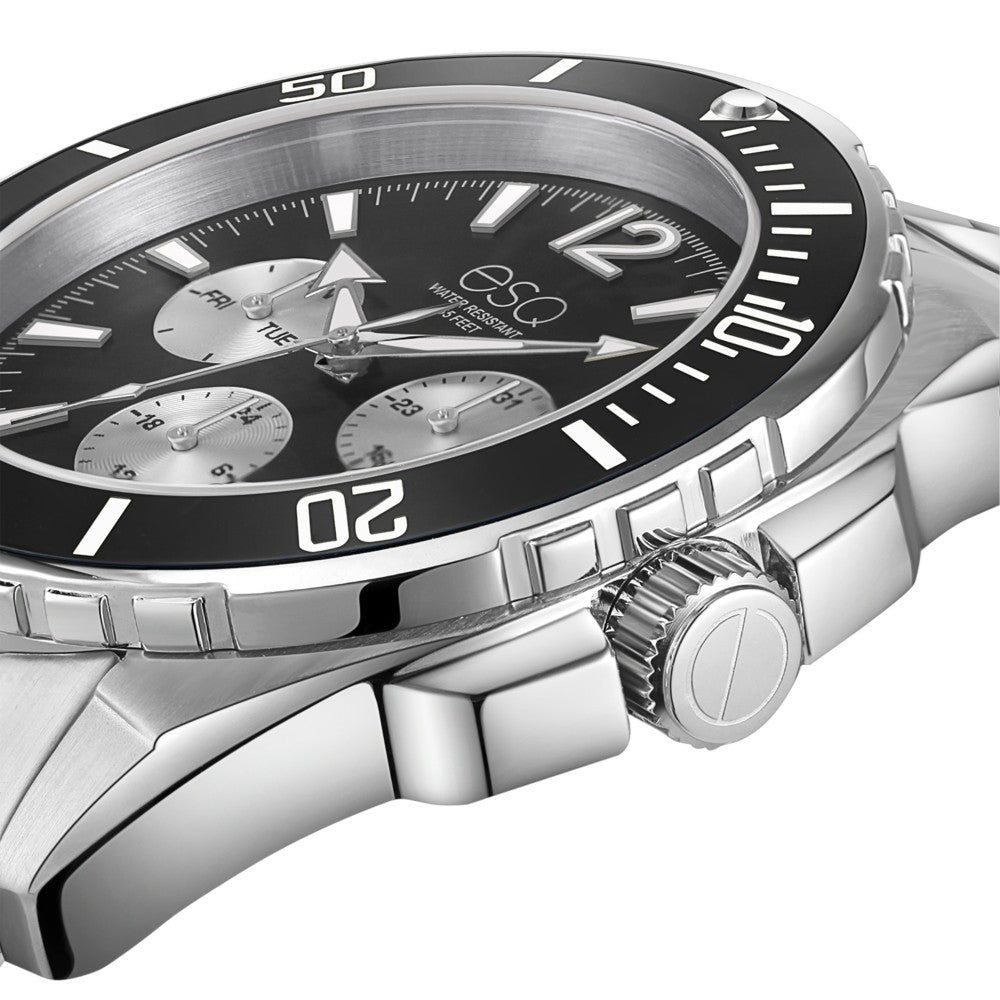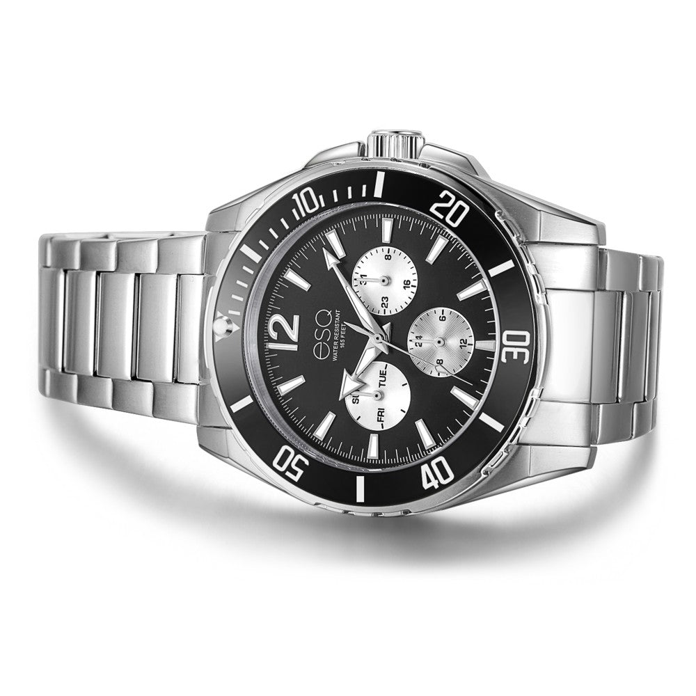 ESQ - Steel Case / Black Dial 43.25mm Stainless Steel Case, 24mm Steel Link Bracelet, Multifunction Movement, 165 Feet Water Resistance.