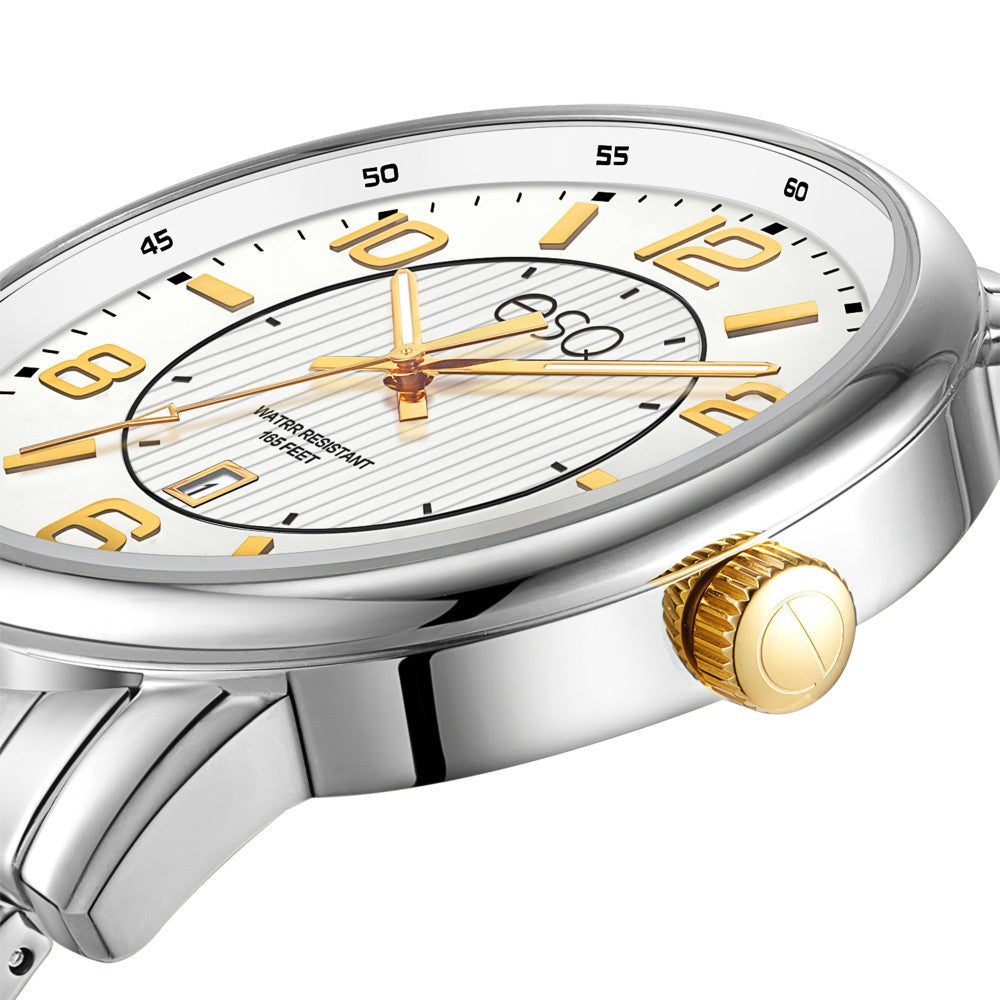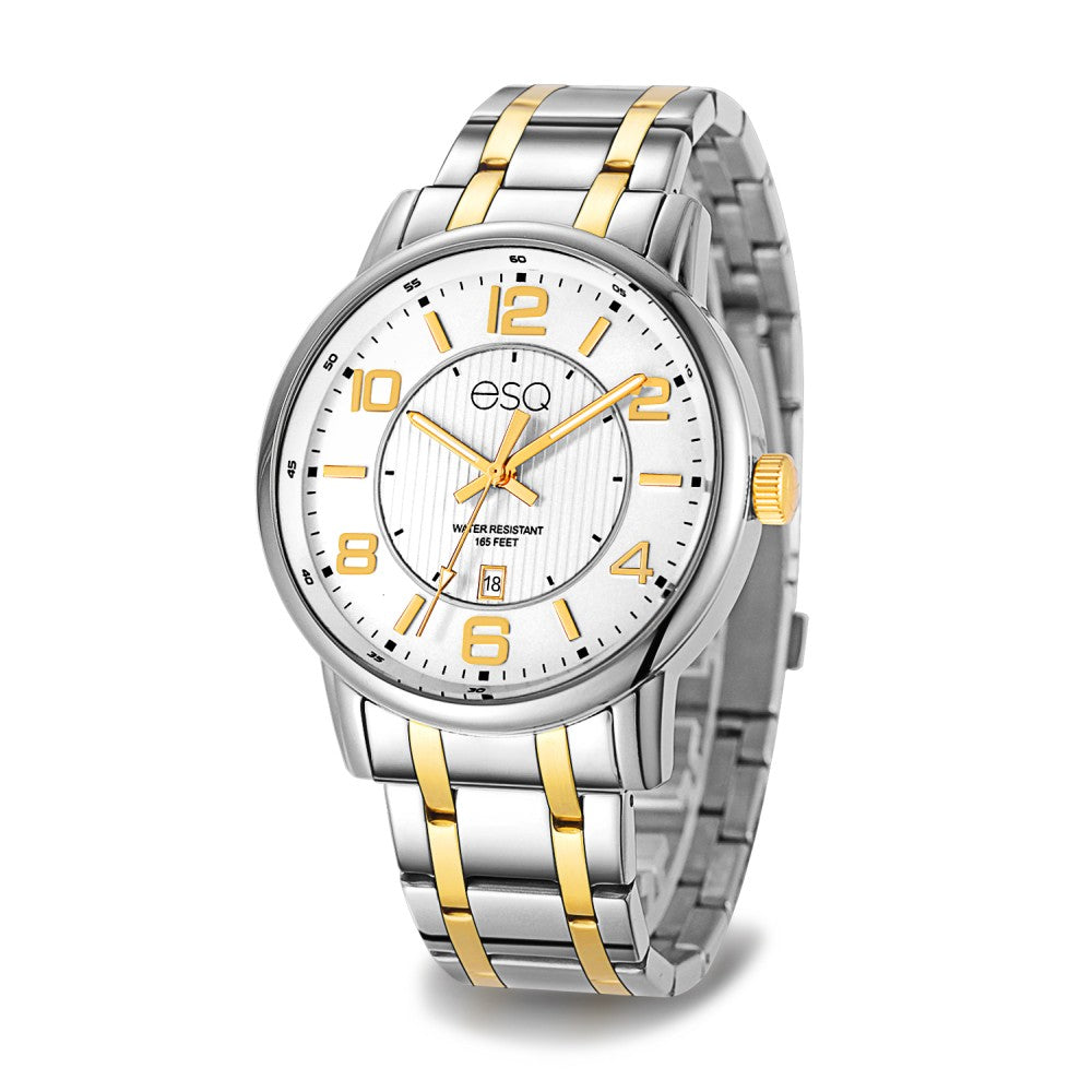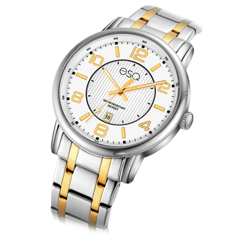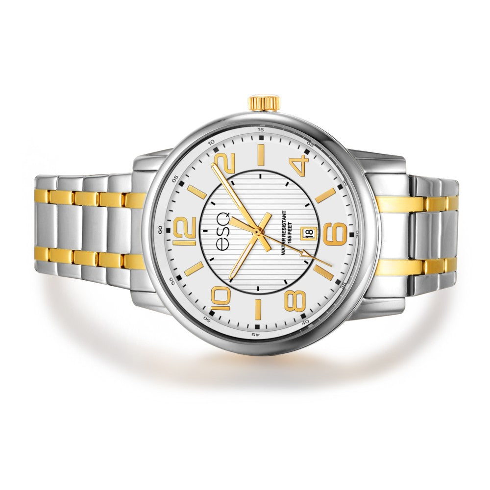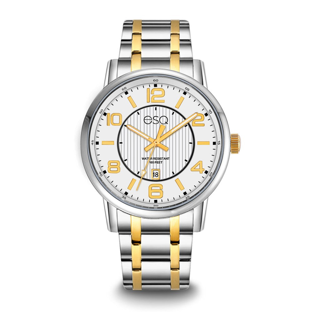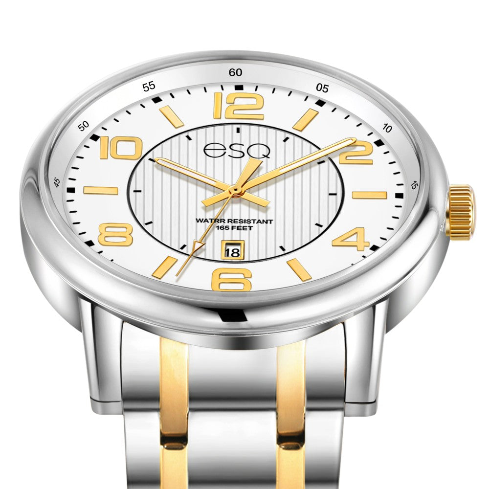 ESQ - Steel Case / White Dial 44mm Stainless Steel Case, 22mm Two Tone IP Link Bracelet, 3 Hand Movement With Date, 165 Feet Water Resistance.